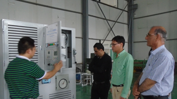 國外友人來我公司考察,公司領導及市場部人員陪同客戶參觀了公司車間,并詳細講解了公司生產的七電平中壓變頻裝置、油井動態節能裝置等產品的生產工藝流程……